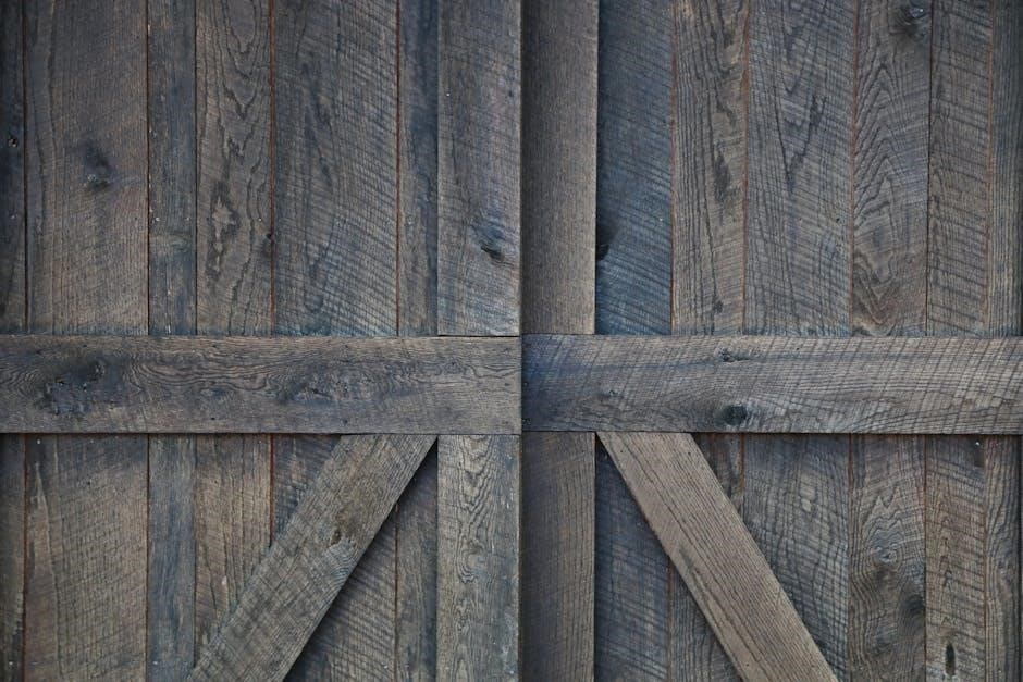 Furthermore, the PDF often highlights the importance of inspecting the door for any signs of wear or damage, addressing issues promptly to prevent further complications. Following these simple maintenance steps, detailed in the PDF, will preserve your barn door’s functionality and aesthetic appeal.